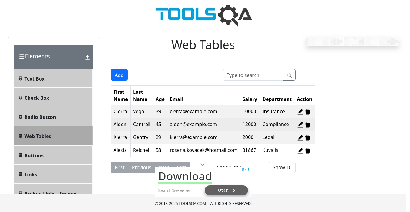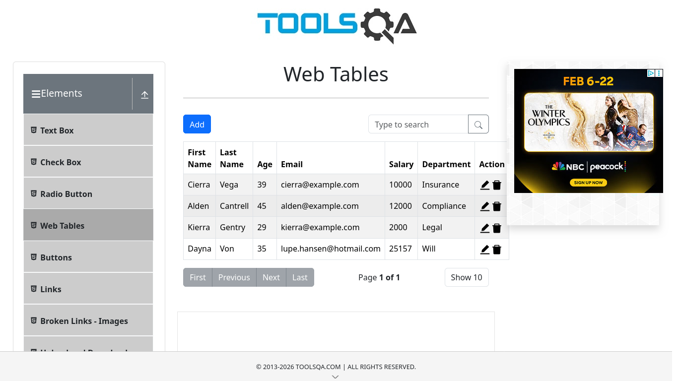 WebTablesTest
