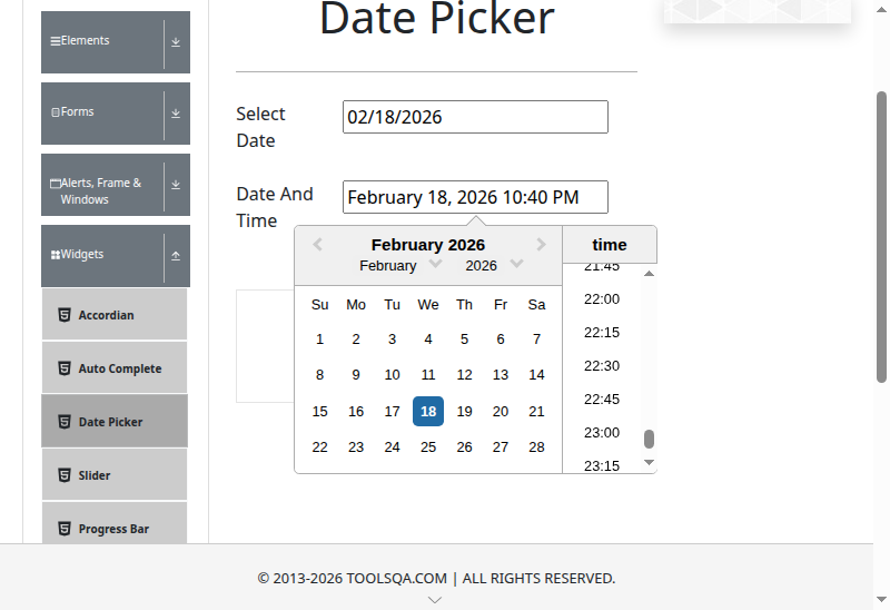 02.18.2026 8:44:27 PM 02.18.2026 8:44:38 PM 00:00:11:206 · #test-id=21WebTablesTest Linux-6.14.0-1017-azure-amd64-chrome